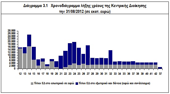 Γιατί όμως αναφερόμαστε στον όρο δημοσιονομική προσαρμογή και όχι στον όρο μέτρα, όπως είναι πιο κοινότυπο στα ΜΜΕ. Λέγοντας μέτρα 11 δις μέσα σε δύο χρόνια αφήνεται να εννοηθεί ότι το κράτος θα εξοικονομήσει 5,5 δις σε κάθε ένα από τα δύο έτη. Δεν είναι όμως έτσι. Η τρόικα ζητάει τα μέτρα να είναι εμπροσθοβαρή. Δηλαδή να ληφθούν μέτρα ύψους 9-10 δις για το 2013. Σημαίνει αυτό ότι η επιβάρυνση για το 2014 θα είναι μόνο 4-5 δις. Όχι βέβαια. Η επιβάρυνση για το 2014 θα είναι 13,5 δις (με τα νέα νούμερα), συν τα 9 του 2013, σύνολο 22,5 δις σε δύο χρόνια. Γιατί όμως η τρόικα επιμένει στο να ληφθεί η πλειοψηφία των μέτρων το 2013; Ο λόγος είναι απλός. Τα χρήματα πάλι δε φτάνουν. Η χρονιά κατά την οποία λήγουν τα περισσότερα ομόλογα του ελληνικού δημοσίου είναι το 2014. Σίγουρα αν τα πράγματα συνεχίσουν με το ρυθμό που κυλάνε σήμερα μέσα στο 2013 θα ξεκινήσει συζήτηση για νέα μέτρα, έτσι ώστε να επιτευχθεί ένα όσο το δυνατόν μεγαλύτερο πρωτογενές πλεόνασμα και να χρειαστούν λιγότερα δανεικά για την αποπληρωμή των ομολόγων που λήγουν το 2014.